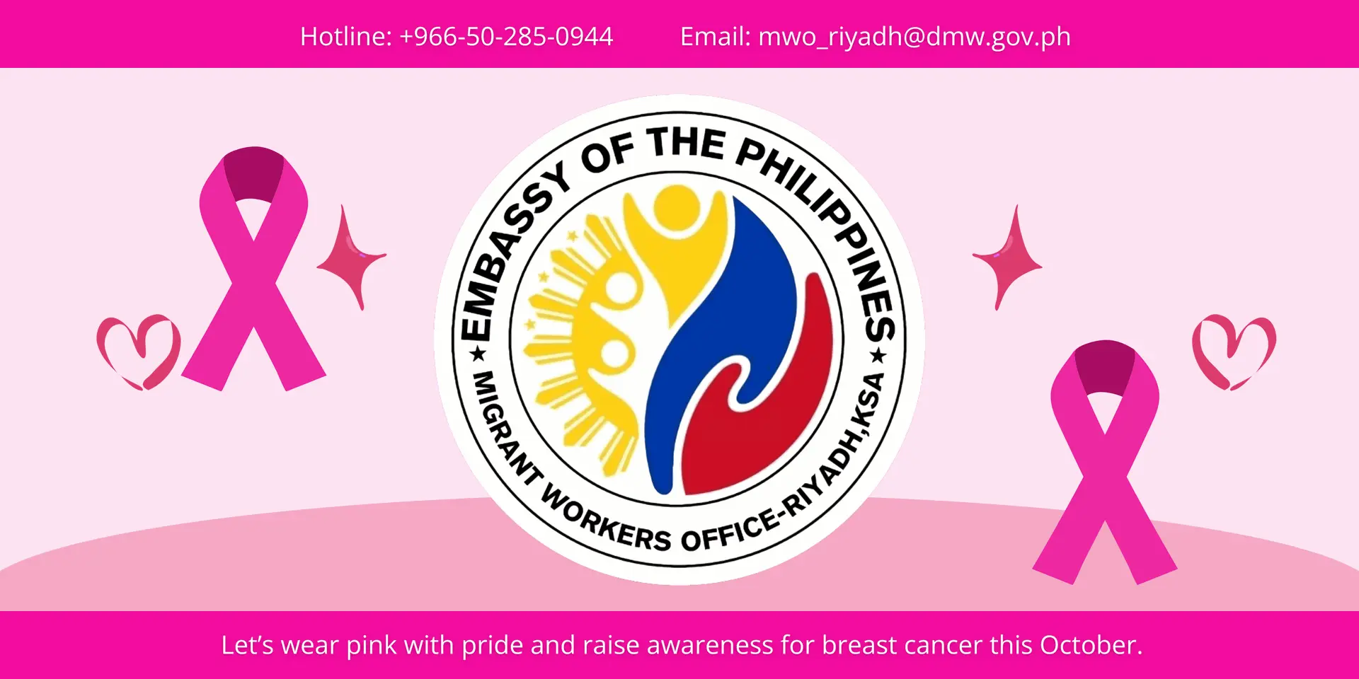 The Migrant Workers Office is proudly celebrating the NATIONAL BREAST CANCER AWARENESS MONTH on October 2025 to promote awareness and support for those affected by the illness.