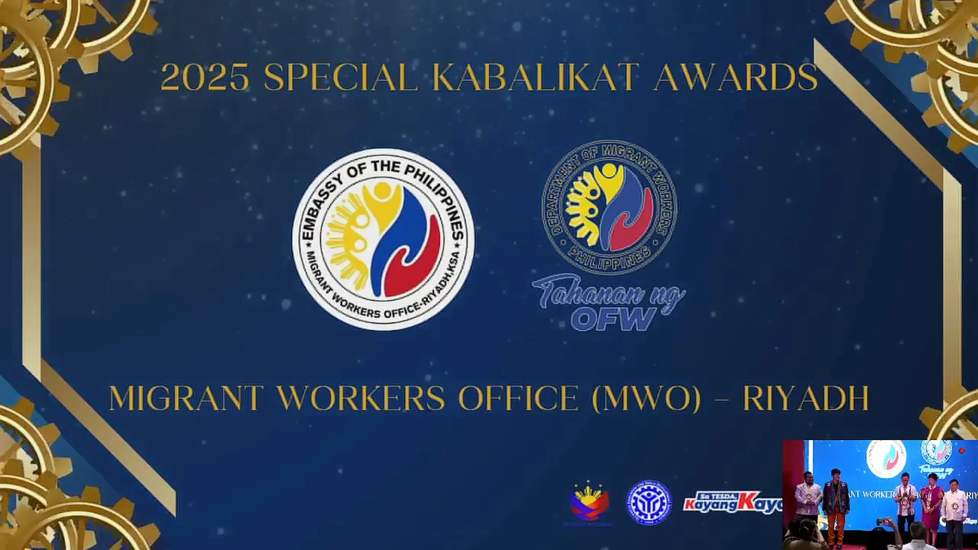 The Migrant Workers Office–Riyadh proudly announces its recognition as a Special Awardee in TESDA’s 2025 KABALIKAT Awards, held at the Philippine Trade Training Center, honoring exemplary partners that advance skills development and professional growth for Filipino workers with Hon. Felicitas Q. Bay, Undersecretary for Foreign Employment and Welfare Services, receiving the award.